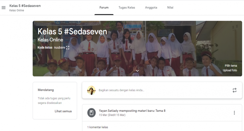 SD Negeri 7 Muntok juga sedang membangun kelas maya yang bisa diakses melalui google classroom dengan menggunakan kode kelas nuubsvv, mari bergabung dengan kelas maya #sedaseven https://classroom.google.com/c/NTM0NTYwOTg3NTNa