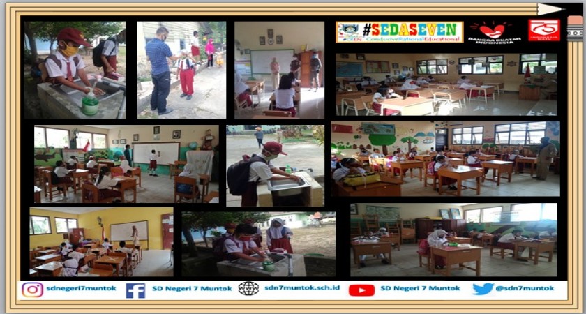 Sesuai dengan Revisi Keputusan Bersama Menteri Pendidikan dan Kebudayaaan, Menteri Agama, Menteri Kesehatan, dan Menteri Dalam Negeri Nomor: 01/KB/2020, Nomor: 516 tahun 2020, nomor HK.03.01/Menkes/363/2020 nomor: 440-882 tentang Panduan Penyelenggaraan Pembelajaran Pada Tahun Pelajaran 2020/2021 dan Tahun Akademik 2020/2021 di Masa Pandemi covid-19 tanggal 7 Agustus 2020, serta sosialiasi Kepala Dinas Dikpora Kabupaten Bangka Barat beserta Tim Gugus Tugas Covid-19 Bangka Barat di SD Muhammadiyah Muntok pada hari Selasa, 11 Agustus 2020 serta Surat dari Kepala Dinas Dikpora Bangka Barat tentang Pelaksanaan Pembelajaran Tatap Muka jenjang SD  Nomor 420/554/1.1.1.1/2020 tanggal 24 Agustus 2020 yang memperhatikan bahwa wilayah kabupaten Bangka Barat masuk dalam zona hijau, maka kegiatan pembelajaran tatap muka dimulai pada tanggal 24 Agustus 2020. Sebelumnya telah dilakukan pengecekan sarana prasarana sekolah sesuai standar protokol kesehatan untuk kesiapan pembelajaran tatap muka di era kebiasaan baru pada masa pandemi covid-19. Kegiatan pembelajaran tatap muka di SD Negeri 7 Muntok dilakukan dengan protokol ketat kesehatan pencegahan covid-19, diantaranya:
