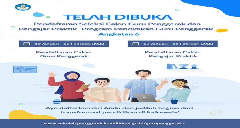 Kemendikbudristek kembali mengajak Bapak/Ibu untuk mendaftarkan diri sebagai Calon Guru Penggerak dan Calon Pengajar Praktik PGP Angkatan 6.