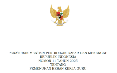 Permendikdasmen Nomor 11 Tahun 2025 Tentang Pemenuhan Beban Kerja Guru