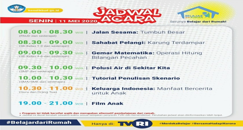 Program #BelajardariRumah di TVRI edisi Senin, 11 Mei 2020