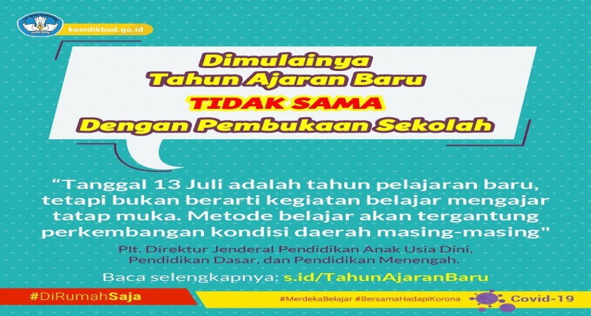 Jakarta, Kemendikbud --- Proses Pelaksanaan Penerimaan Peserta Didik Baru (PPDB) tahun 2020 akan segera dimulai, artinya sistem pembelajaran akan segera masuk Tahun Ajaran baru 2020/2021. Namun, ditengah pandemi Corona Virus Disease 2019 (Covid-19) Plt. Direktur Jenderal Pendidikan Anak Usia Dini, Dasar, dan Menengah (Plt. Dirjen PAUD Dasmen) Kementerian Pendidikan dan Kebudayaan (Kemendikbud), Hamid Muhammad menegaskan bahwa ada perbedaan antara dimulainya Tahun Ajaran baru dengan tanggal dimulainya Kegiatan Belajar Mengajar (KBM) untuk tatap muka.