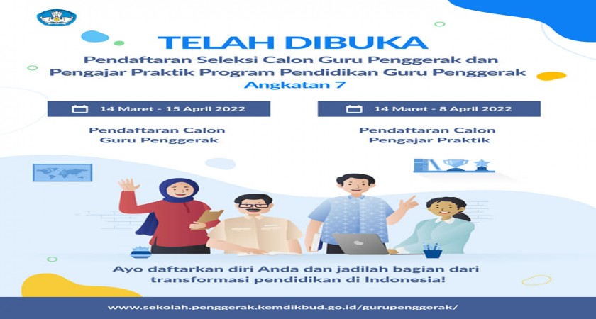 Kemendikbudristek kembali mengajak Bapak/Ibu untuk mendaftarkan diri sebagai Calon Guru Penggerak (CGP) dan Calon Pengajar Praktik (CPP) PGP Angkatan 7.